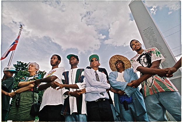 The Summer of ’64, also known as the Freedom Summer was a campaign to register voters, principally people of color and to promote and support their right-to-vote in Mississippi, in the summer of 1964. The project was a collaborative effort unifying community and civil rights leaders, students, and people of faith. Pictured are (l-r) The mother of slain CORE community voting organizer Andrew Goodman with a Mississippi community activist, youth participating in the day of remembrance and reunion, USC Academic, writer, and Mississippi civil rights Dr. Endesha Ida Mae Holland, and noted Professor, Writer and American Civil Rights Leader Julian Bond. All photos (exception of Dr. Holland) were taken in Jackson Mississippi, August 1994 published in the Washington Post.
