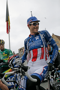 BMC rider George Hincapie at the start of the Tour of Flanders, 2010