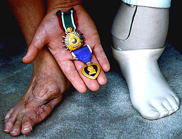 A veteran of Operation Desert Storm went on an off duty mine sweep. The photograph shows the result. The V.A. refused to pay for medical bills until this story and photographs were published in the Los Angeles Times. Remembering all veterans today. Those who answer with their lives to Democracy’s call.