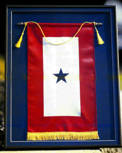The origin of the Blue Star is traced back to the Great War or World War I. The flag, hung in households across the United States honors efforts of service men and women, with each star representing the number of family members in active duty. I am posting this today on Veteran’s Day to remember those in past and present.