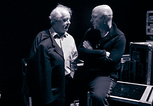 A quiet moment between two accomplished/creative story tellers, film writers/directors, (L-R) Jim Sheridan and Anthony Minghella. Today hearts around the globe gasp at the loss of Anthony Minghella, who died today March 18th, 2008 of a brain hemorrhage. Assuming, my fly on the wall posture, I photographed these two talented, respectful gentlemen, doing what they do best, storytelling. Personally, I am at a loss and in disbelief of his passing. I, like so many others, eager for his next masterpiece. My respects and condolences to his family. Photo: Ana Elisa Fuentes