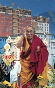 Photographed before a backdrop of the Potala Palace, in Mountain View, California, the XIV Dalai Lama stated that if violence persists the Spiritual Leader of Tibet, in exile will resign.