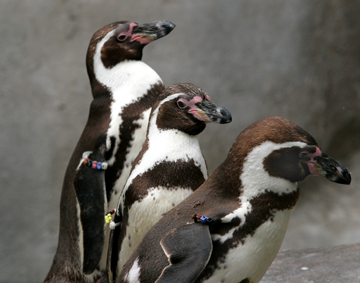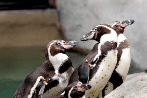 These inquisitive playful creatures, called Humboldt Penguins, originate from South America. Like other animals on our planet they are a threatened species, due to habitat destruction and over-fishing.