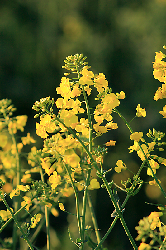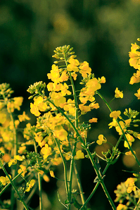 Raps in harvest, raps oil directly into a tractor fuel tank and the raps in spring time full bloom.