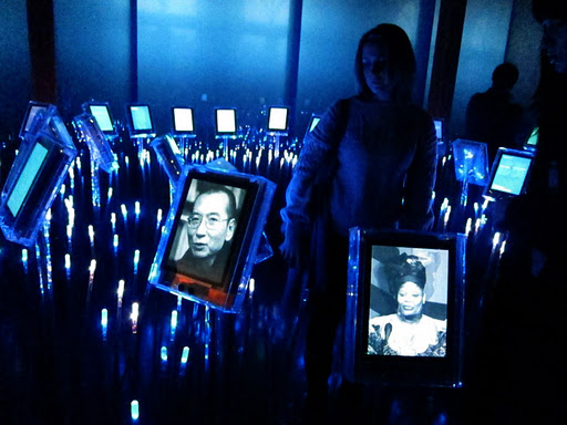 Photograph of the postcard rack at the Nobel Peace Center in Oslo, Norway. Many thanks to the Nobel Peace Center in Oslo for licensing permission. photocopyright ana elisa fuentes