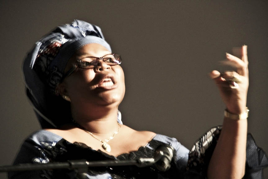 Harriette Williams, an Advocacy Officer at Femmes Africa Solidarité during the panel discussion on Women, Peace and Security at the Det Norske Theater, December 11, 2011 in Oslo, Norway.