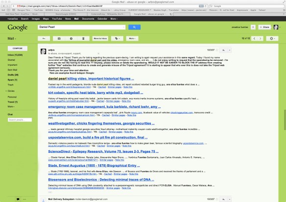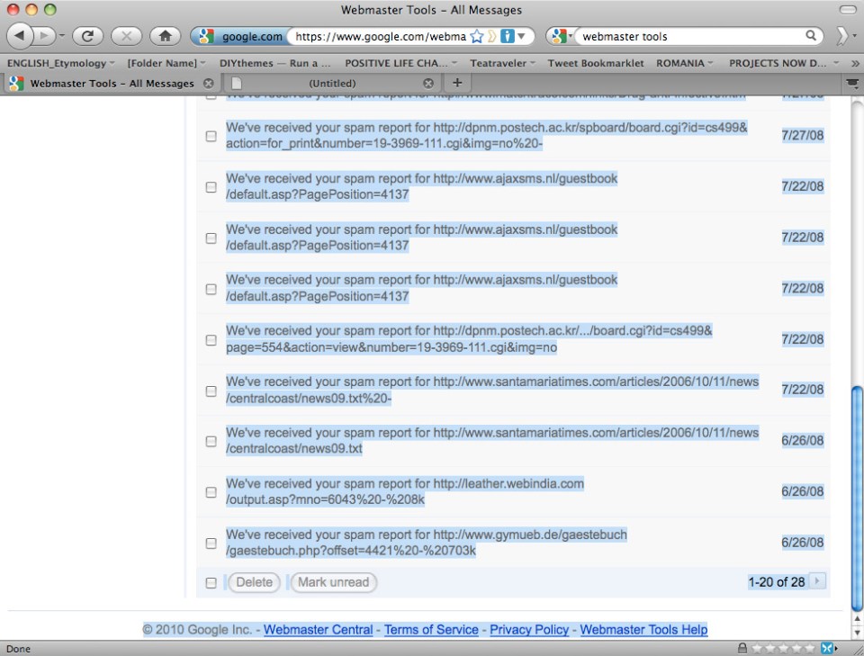 Below is a chronology of the cyber-spamming reports filed vis-á-vis Google Webmaster tools. Page one of two.