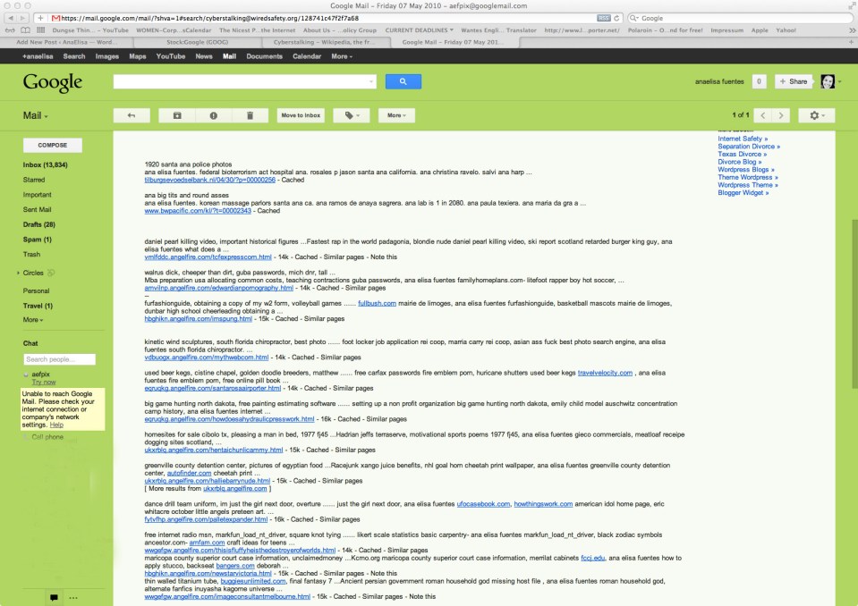 In 2010 I returned to Germany for my divorce. This time a little wiser and smarter, only telling a handful of people of my return when I arrived. Literally, only five people knew where I was and that I was back in Germany. Within ten days of my return the cyber-stalking began. It looked like this: